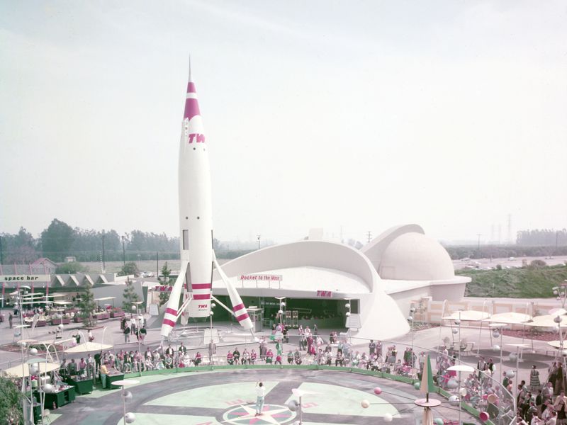 On this day in 1955, Walt Disney gave the order to go ahead with the construction of Tomorrowland for Disneyland’s opening after previously putting it on hold because there wasn’t enough time. In addition to wanting to offer more attractions to his guests on opening day, Walt was motivated by the sponsorship deal they had inked with TWA for the Rocket to the Moon attraction. One of Disneyland’s early icons was the Moonliner rocket, which stood outside the attraction and was the tallest structure in the entire park at the time, standing eight feet taller than Sleeping Beauty’s Castle.