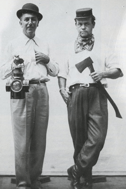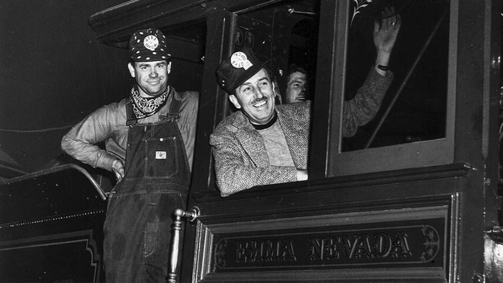 According to Imagineer Randy Bright, “Disney’s wife, Lillian, believed that it was Walt’s longtime fascination with trains that really provided a focus for Disneyland.” Perhaps no one nurtured that fascination with trains for Walt more than Kimball, whose San Gabriel home was surrounded by old orange groves and became home to the Grizzly Flats Railroad. Kimball often hosted “steam-up” gatherings where he entertained guests with his railroad. On October 20, 1945, Walt attended one of these parties and jumped aboard the Emma Nevada locomotive. With Kimball’s encouragement and supervision, Walt drove a full-size locomotive for the first time in his life. As Kimball put it, it was immediately clear Walt had “a railroader’s ‘high iron’ in his blood that he just hadn’t discovered…yet.”