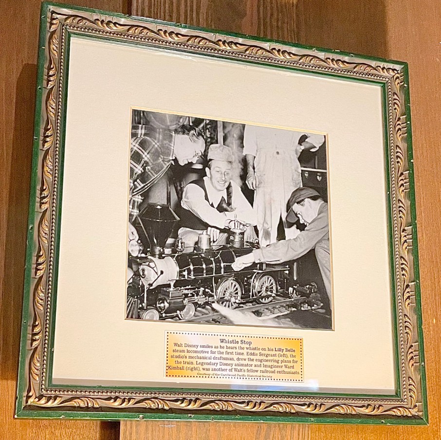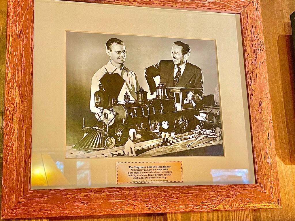 Broggie, who is considered to be the first Disney Imagineer, also appears in a framed photo titled “The Engineer and the Imagineer” along with Walt and the Lilly Belle locomotive.