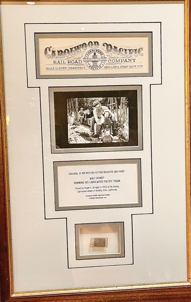 There’s also a framed 35mm negative print from a video filmed by Broggie of Walt riding the Carolwood Pacific along with some guests he’s entertaining.