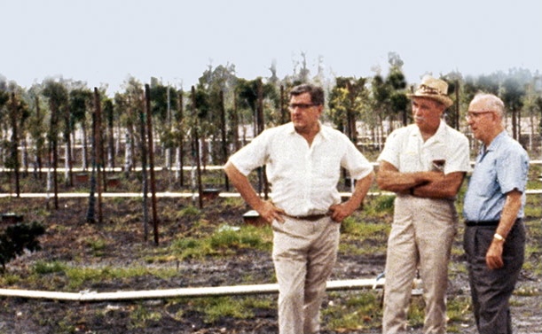 Walt’s first encounter with the Evans family came years before Disneyland was planned. According to Disney Imagineer and landscaper Paul Comstock, a young Walt purchased roses from the Evans and Reeves Nursery for the Disney family home in the San Fernando Valley. Many years later, Walt hired Bill and his brother Jack to landscape the backyard at his Holmby Hills home which also incorporated Walt’s Carolwood Pacific backyard railroad. In 1954, the Evans brothers were asked to landscape a theme park project Walt was going to build on some land in Anaheim that was home to mostly orange groves and some walnut trees.