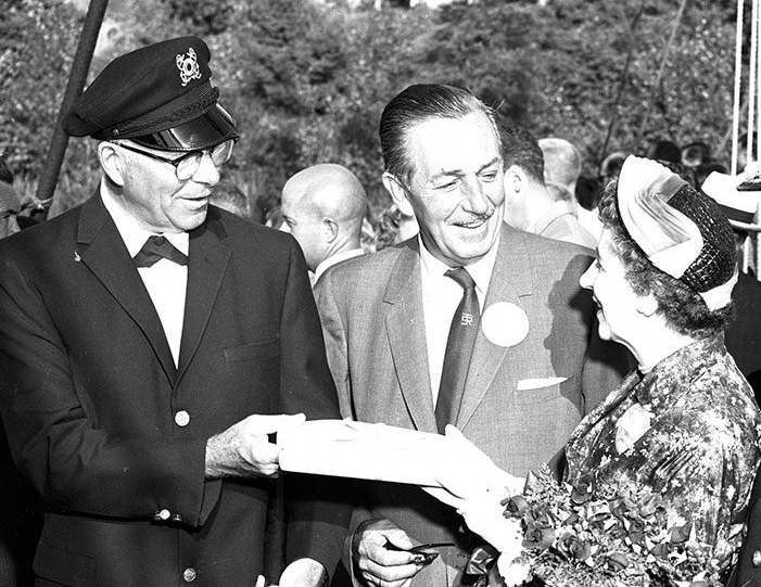 By now you’re probably wondering how a distinguished Navy Admiral wound up working for Walt Disney. That path would begin during his time at the Defense Department when Joe hired the Stanford Research Institute (SRI) to conduct a study. Through that process he met C.V. Wood, who along with his SRI colleague Buzz Price, also conducted the Disneyland site study that resulted in selecting Anaheim as the park’s home. In April of 1954, C.V. called up Joe, who was living in the northern California city of Los Gatos, and told him he was going to bring an unnamed man by his house. The man was Walt Disney, who was in the area to look at a railroad.