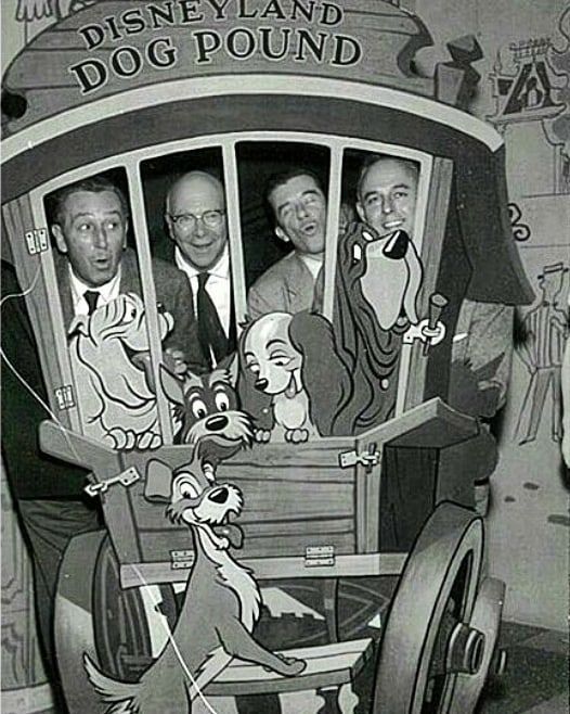 Walt Disney and Joe Fowler (in hat) visiting the Santa Cruze Boardwalk in the 1960s to examine the Autorama ride