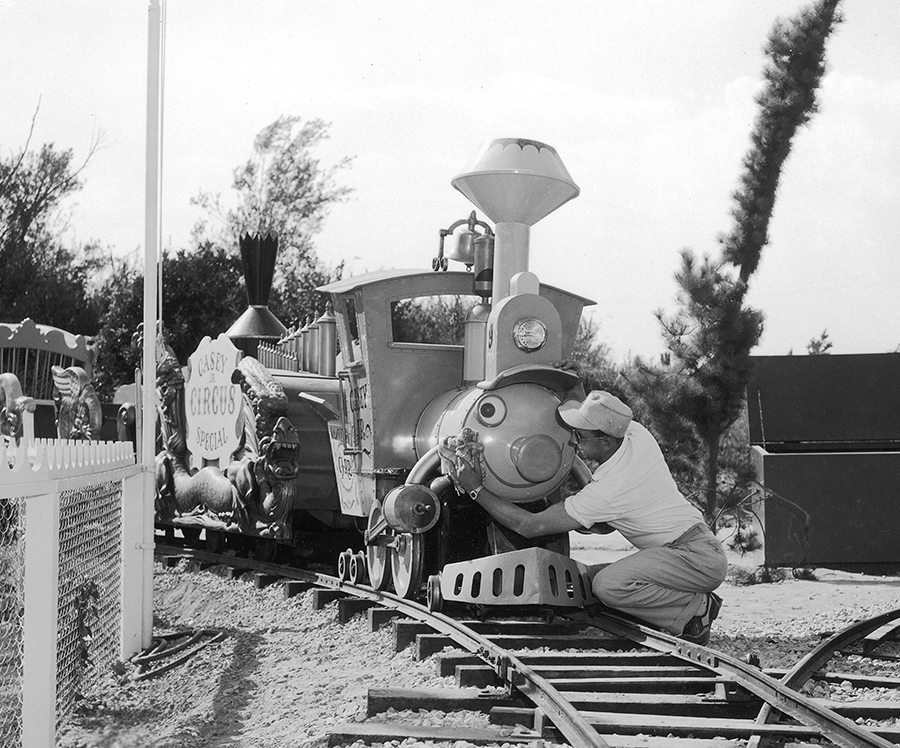Joe Fowler, the man in charge of Disneyland’s construction, recounted to Disney biographer Bob Thomas that he was forced to break the bad news to the boss: “We had the little Casey Jr. train and he loved it. And just before we opened, this was the first time the train had come back, down from the Studio, and we ran it around and it was top-heavy. I told Walt, ‘Walt, I’m sorry but we just shouldn’t run that train for the public until after we get some keepers on it so that going around the curves or if she’s loaded on one side or the other, it won’t tip over. Otherwise very frankly, it would be very dangerous.’ He said, ‘All right, Joe,’ and he walked away. And I heard afterwards he was very disappointed. But that’s all he said. In two weeks we got the keepers on. And that was all there was to it.”