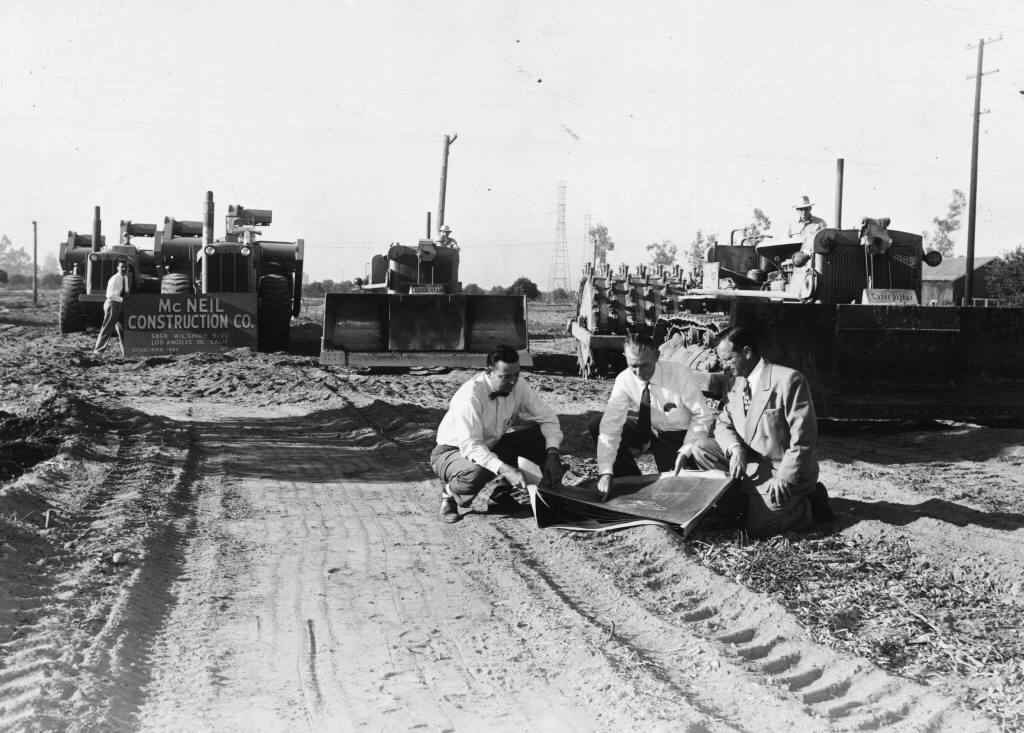 The McNeil Construction Company was a Los Angeles based general construction firm. The family business was founded in 1886 and became one of the biggest builders in the West. At the time of Disneyland’s construction, McNeil was run as a co-partnership of Lawrence G. McNeil and his son, Bruce. The company was responsible for the construction of many large office buildings in downtown Los Angeles, as well as factories, hospitals, churches, and schools. Some of the other noteworthy McNeil projects include the Orpheum Theater, Loyola University, Pepperdine College, The Dunes hotel and casino in Las Vegas, the original Lockheed aircraft plant, and the Firestone tire factory, just to name a few. During World War II, McNeil constructed a number of government buildings. The company survived until it was officially dissolved in 1994.