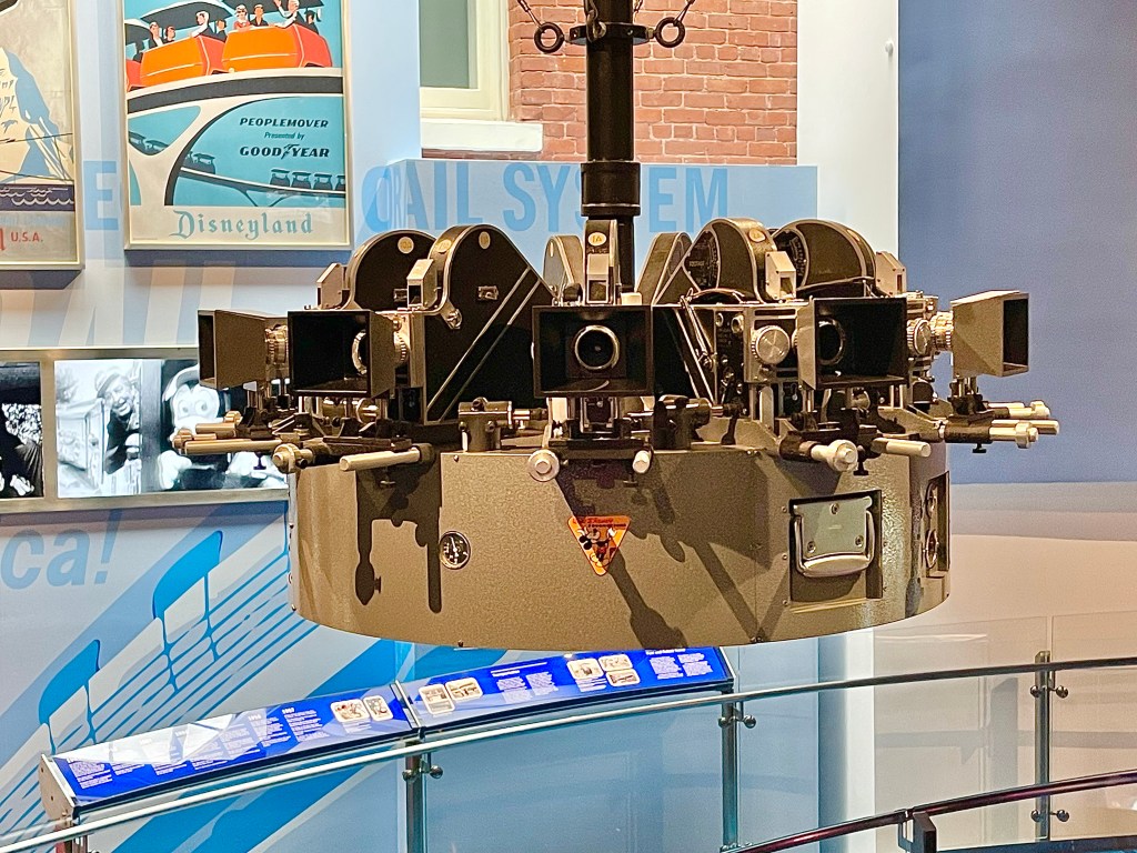 The original “Circarama” camera system also hangs from the ceiling. It was designed by Disney Legend Ub Iwerks and mounted on top of a car to film the original “A Tour of the West” film which debuted in Disneyland in 1955.