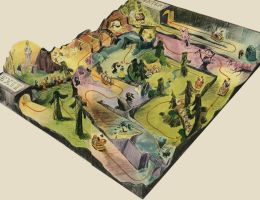 One of the first previews of original Disneyland attractions came as a treat to attendees of the 1954 Anaheim Halloween Festival parade. Concept art below by Yale Gracey shows the parade floats designed by Disney for the city’s big annual event.