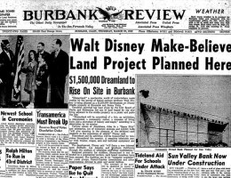 On this day in 1952, the Burbank Review newspaper ran the headline “Walt Disney Make-Believe Land Project Planned Here.” For the first time, the general public read about Walt Disney’s plan to build an amusement park and call it “Disneyland.”