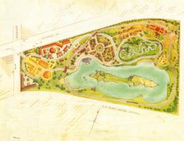 Walt Disney’s first concept to build a park wasn’t called Disneyland and wasn’t located in Anaheim. This concept drawing depicts the Mickey Mouse Park Walt initially wanted to build on land next to the Disney Studio in Burbank.